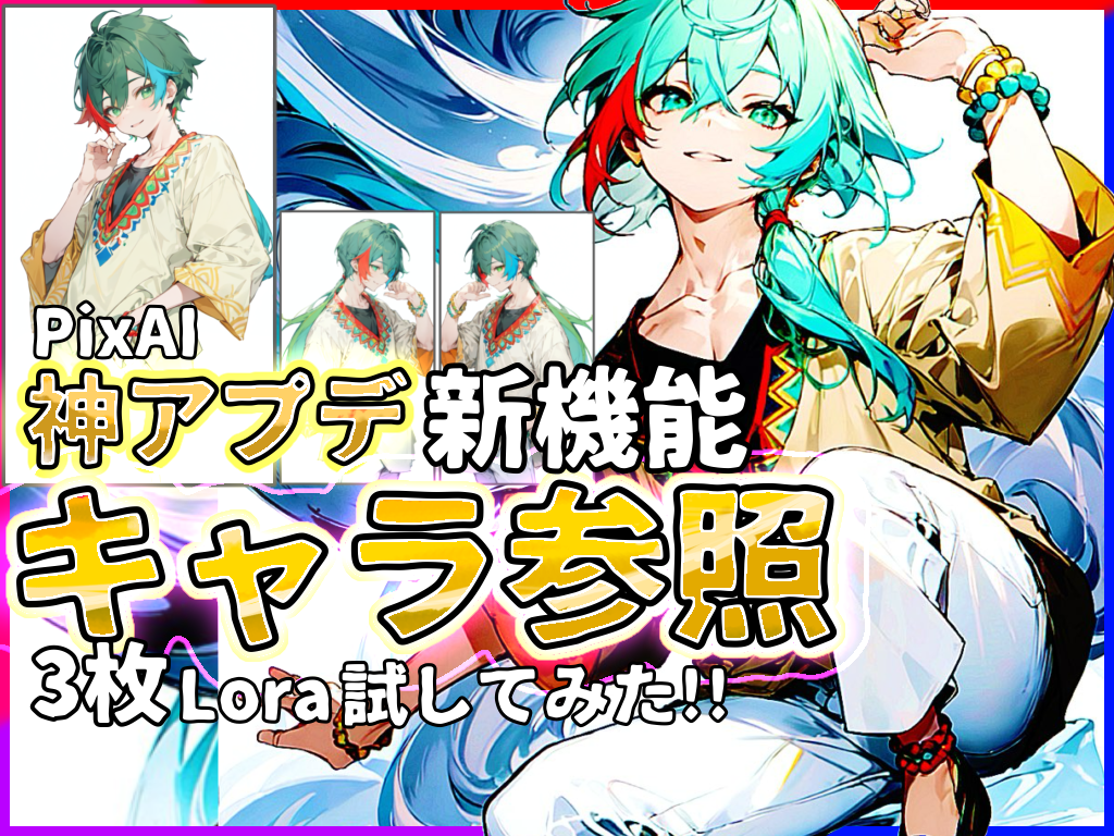 キャラ参照とは、正面、横などの1~4枚の少ない画像で、そのキャラの特徴を学習し、キャライラスト生成が行えるPixAIの新機能。
